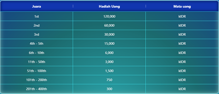 6. Hadiah Turnamen dengan total hadiah senilai IDR 600.000.000 yang akan dibagikan selama periode promosi.