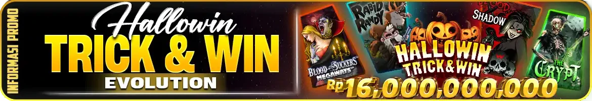 HALLOWIN TRICK & WIN - EVOLUTION menghadirkan lagi promo spesial tentu nya untuk para member setia Wigobet, Promo menarik ini berlaku pada permainan Slot Games : NETENT : Rabid Randy Dark Trails , Red Tiger : Blood Suckers™ Megaways™ , Nolimit City : The Crypt (Nolimit City) , Nolimit City : Blood & Shadow game Promo ini berlaku untuk semua member setia Wigobet dengan minimal deposit Rp. 10.000,-. Jangan lupa untuk ajak teman-teman anda bermain bersama dan menangkan hadiahnya , Berikut syarat dan ketentuan promosinya akan kami jelaskan pada artikel berikut ini.