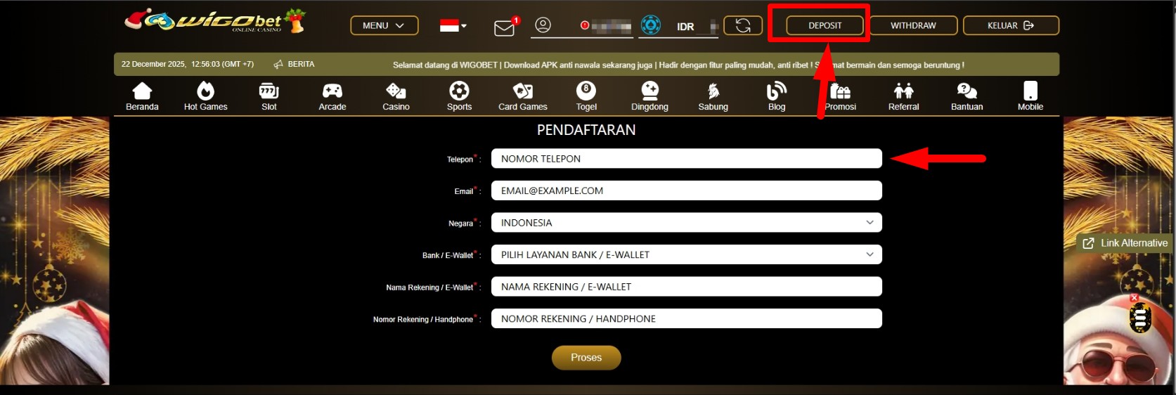 Minimal Deposit di Wigobet.com adalah Rp 10.000,-Berikut cara melakukan deposit di Wigobet.com :
