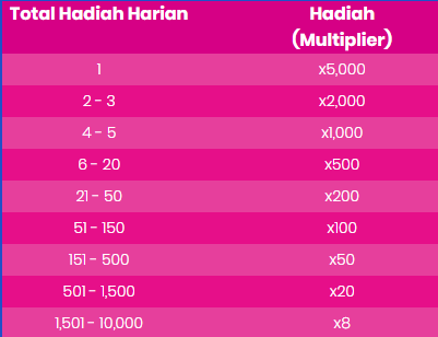 5. Pembagian hadiah dilakukan maksimal 2×24 jam setelah periode harian berakhir.